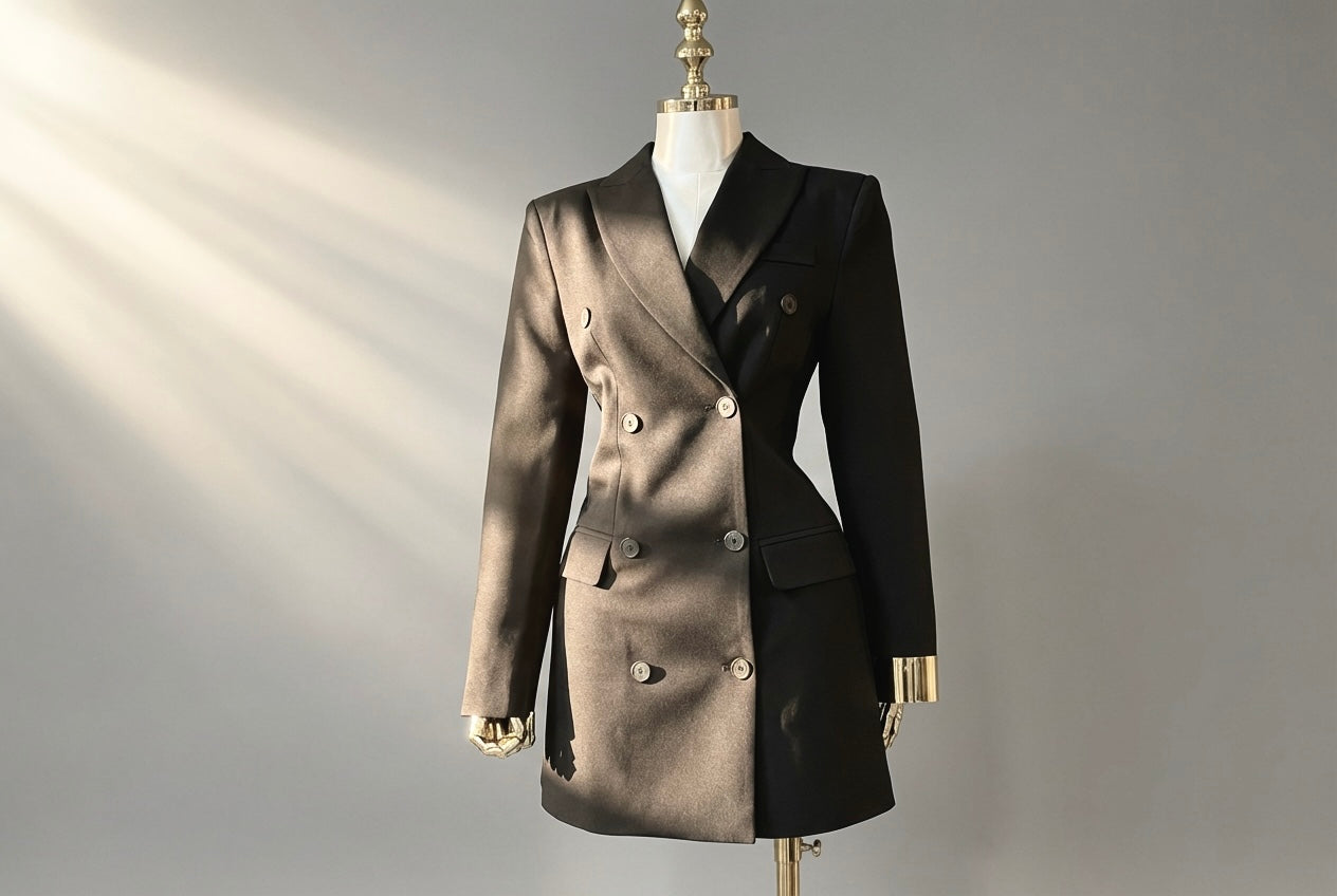 A sleek, blazer-style romper with a tailored fit and double-breasted design. Polished, powerful, and effortlessly chic—perfect for work or a night out.