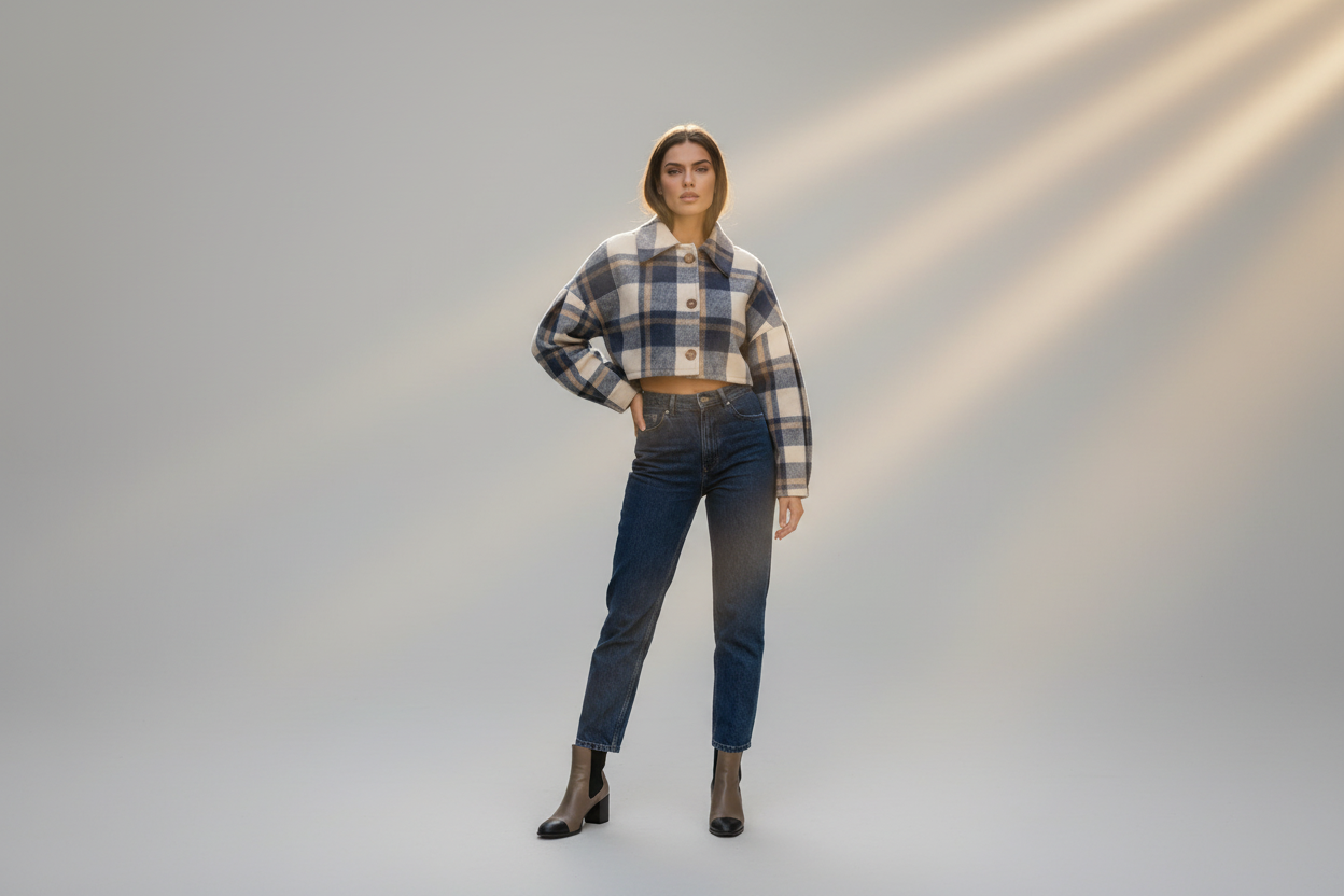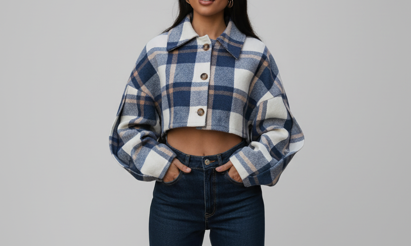 Meet your new season essential: the Azure Shacket. This stylish hybrid garment combines the structure of a jacket with the comfort of a shirt, perfect for layering during transitional weather. The bold blue and white plaid pattern offers a crisp, casual aesthetic.