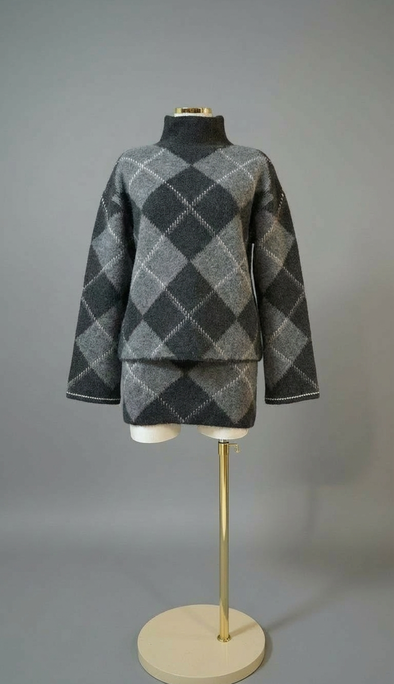 Elevate your everyday style with The Diamond Pattern Set, a perfectly coordinated sweater and skirt duo designed for effortless chic. Featuring a classic diamond pattern, this set blends timeless design with modern comfort, making it a must-have for cooler days.