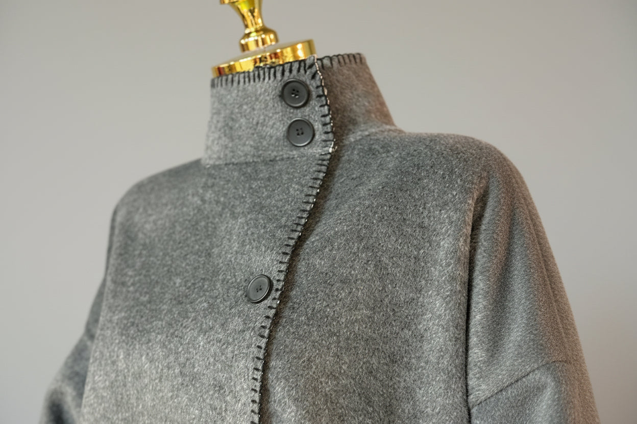 The Chic Sweater Jacket blends the comfort of a sweater with the polish of a jacket. Featuring a modern asymmetrical button front, high neckline, and relaxed fit, it’s the perfect layering piece for effortless, everyday style. Cozy, versatile, and undeniably chic.